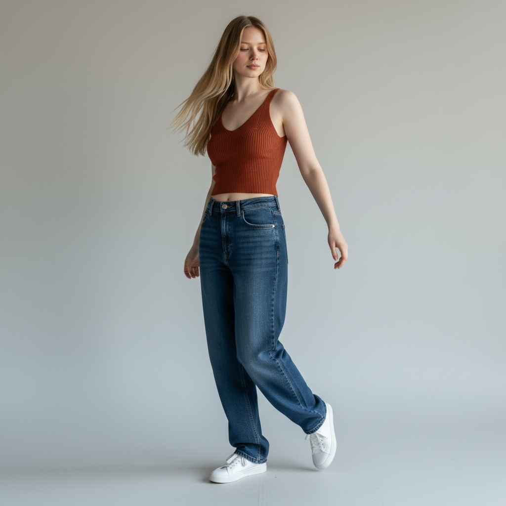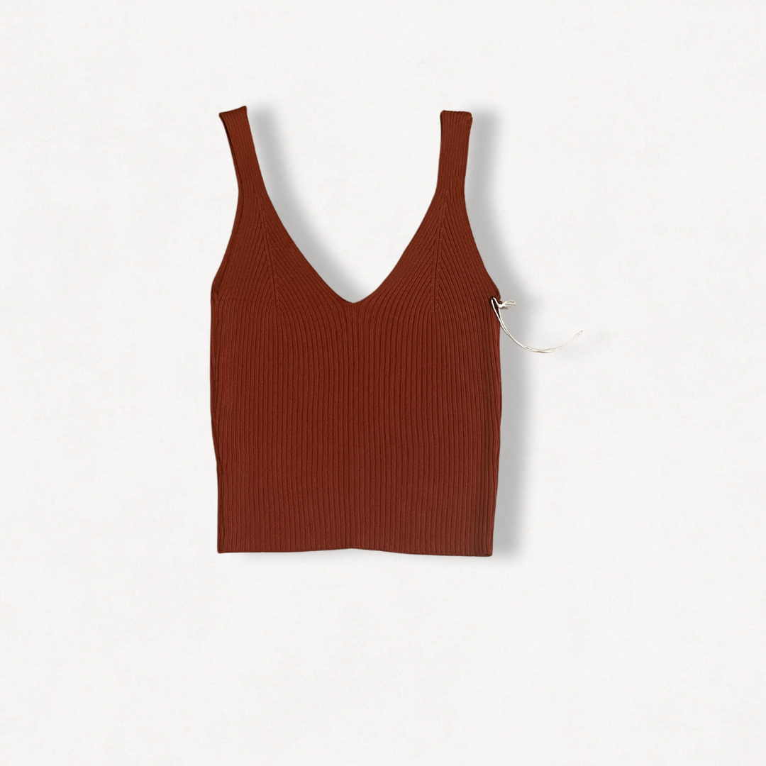 Top Millie de punto acanalado en color marrón terracota, con escote en pico y tirantes anchos que estilizan la silueta. Una prenda sencilla pero potente, perfecta para llevar sola o en capas y elevar cualquier look con un toque seguro y femenino.
